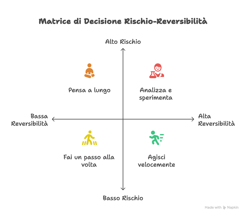 In sostanza, misuriamo le decisioni sulla base della loro rischiosità e reversibilità.